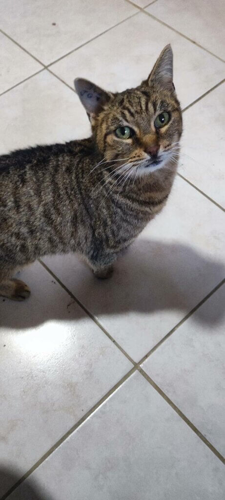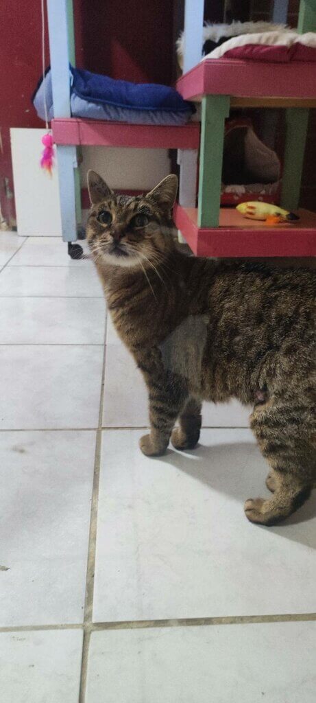 Fifi, femelle tigrĂ©e nĂ©e en janvier 2020, est une adorable petite minette au gabarit tout lĂ©ger, mais au cĆur immense.