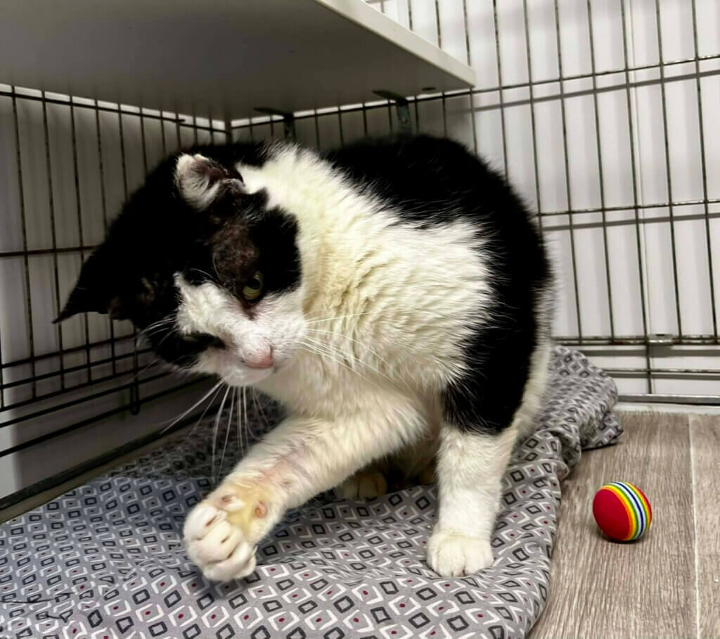 Notre beau matou noir et blanc, né en janvier 2019, a connu la dureté de la rue. ![]()