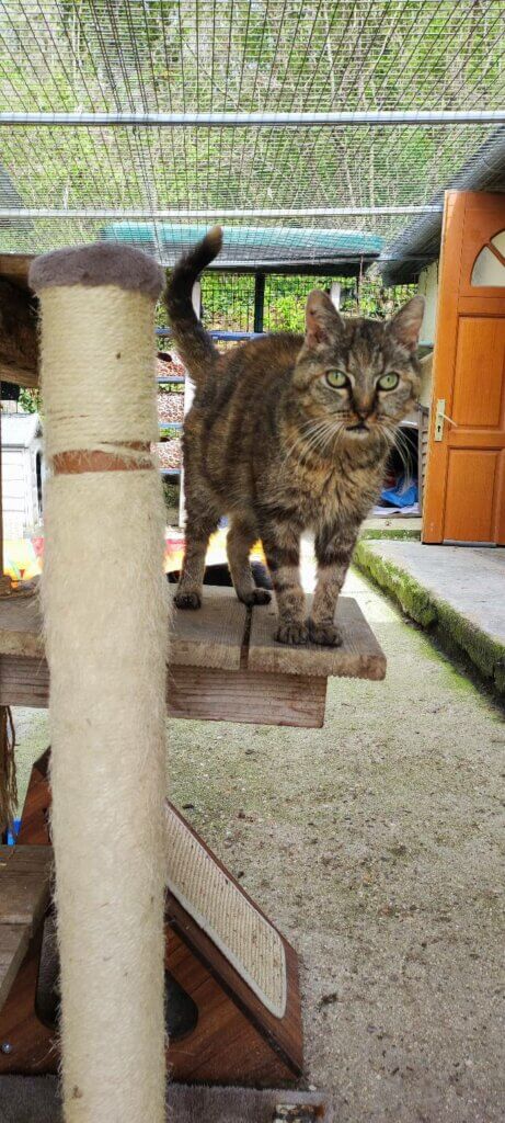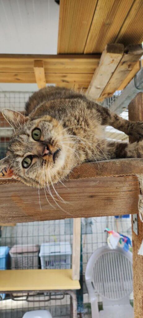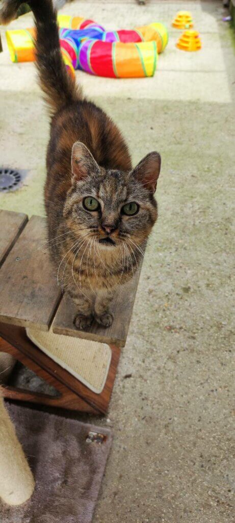 Toujours présente à l’entrée du refuge, elle est impossible à rater : elle fait sa petite parade pour attirer l’attention et tend sa petite patte afin d’obtenir un câlin… impossible de résister ![]()