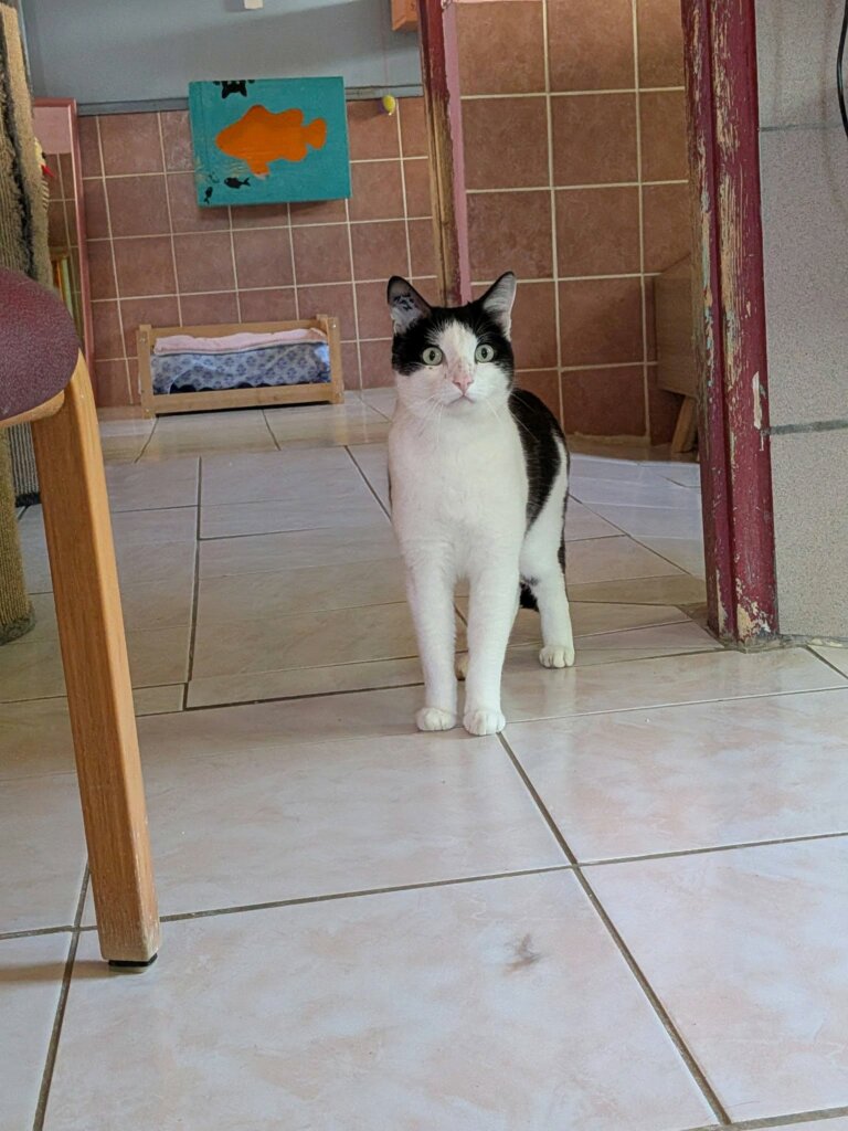 Né en avril 2021, Malot est un superbe minou noir et blanc, au regard curieux et particulièrement expressif ![]()